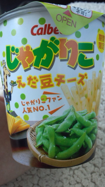 売ってた\(^o^)/じゃがりこ枝豆チーズ味。そーいや前に、これ発売するって言ってたよね~。ってかいつも行ってるコンビニだとホント売ってなくて困るわ~…。