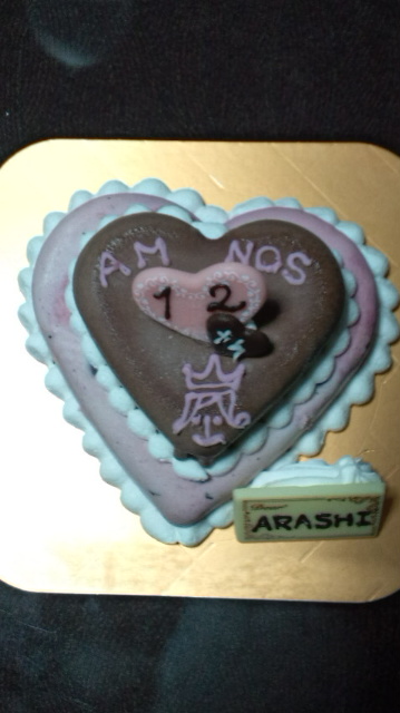でも、ハートの方には文字入れてくれないというので自分で。ついでに嵐のロゴも入れたろうと。