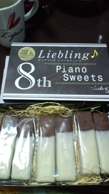 浜コンに行ってきた姉のお土産がデラうみゃあー(゜Д゜)公認スウィーツらしいんですがね。鍵盤を表現してるんですね。それにしても美味い…。お上品なお味で大変美味しゅうございました。